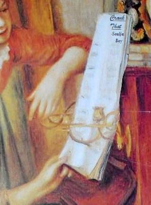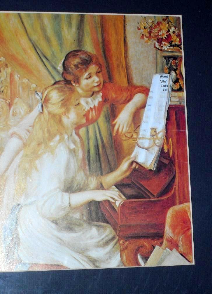 This is a famous painting by Renoir titled “Girls at the Piano.” The original is very expensive, so having a remake still gives off an expensive feel to the untrained eye.