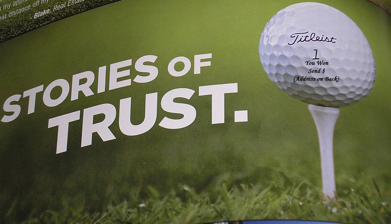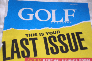 My wife just tried to tell me that our subscription simply ran out, but what are the chances that they went through the millions of magazines to find mine and staple a “last-issue” reminder on it? She rebutted by pointing out the options for renewal written in smaller font at the bottom. I told her that’s just to throw off the police. She thinks I’m an idiot, but then how can she explain this (on page 1 of Golf Magazine)?