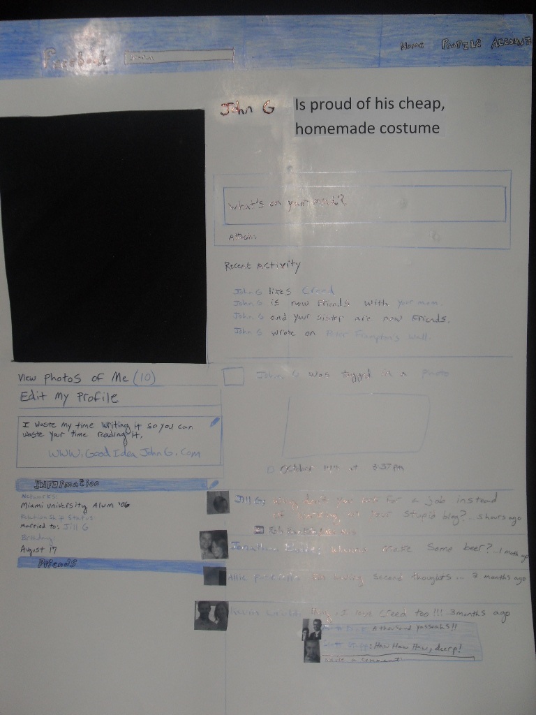 This costume comes with a marker for people to write their names into the “friends” column over the course of the night. If people I do not know want to write their names, I will ignore them the whole night unless they can name at least four of my friends.